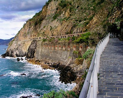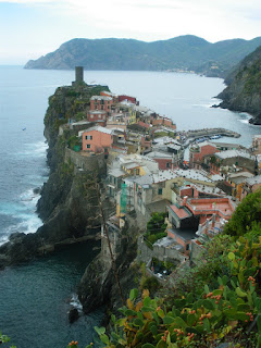 Well, we both started this day off early. We woke up around 4 or 5 am (can't remember exactly as jet lag has killed brain cells) and decided to get an early headstart to the Cinque Terre. Turns out we were glad we did because our GPS didn't work that we'd rented and we were dependant on Angela's mad navigational map skills and my newly learned mad woman driving skills at that point. Wow. It took us a very long time to get to our destination. Looking at the map, we took what looked to be the shortest route and what actually ended up being the longest...only because there were 10 million little towns in between. I did see more road cyclists through those little towns than I have ever seen in my life! The scenery was gorgeous but the roads were time consuming. So, after about 5+ hours of driving and an extra hour of driving in La Spezia looking for the train station to take us to Cinque Terre, we finally made it. MAN, it was worth it. All the stress and confusion of the day dissipated at that point.