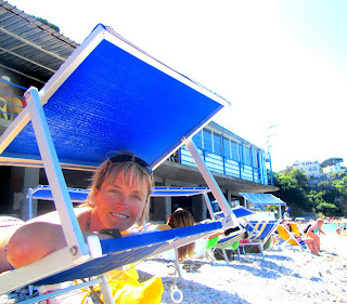 I bought a beach towel (for a souvenir as well) and laid on rocks while Angela enjoyed the luxury of a very nice chair with a face shade. Heaven.